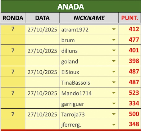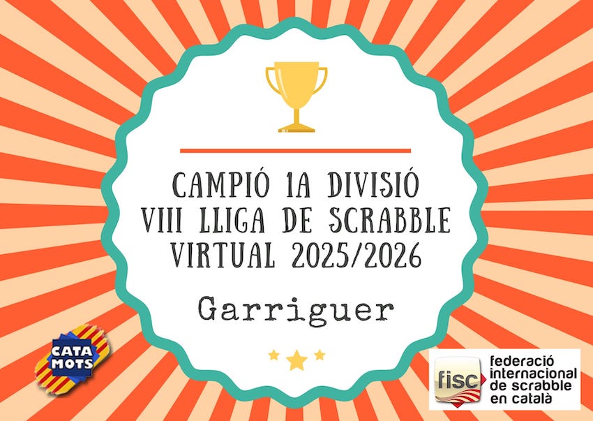 En aquesta secció us mantindrem al dia dels resultats i classificació de la 1a divisió de la 8a Lliga de Scrabble virtual amb Catamots.