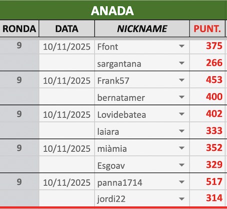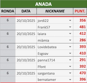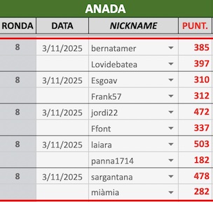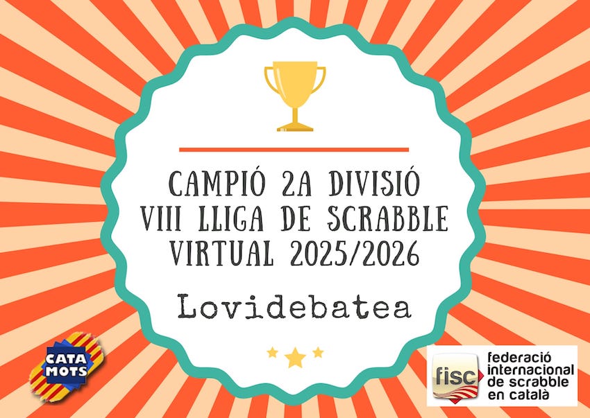En aquesta secció us mantindrem al dia dels resultats i classificació de la 2a divisió de la 8a Lliga de Scrabble virtual amb Catamots.