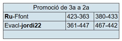 Per la següent lliga, jordi22 i Ru jugaran a 2a divisió, i Ffont i Evacl, a 3a.