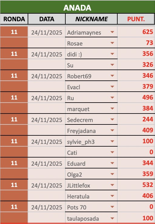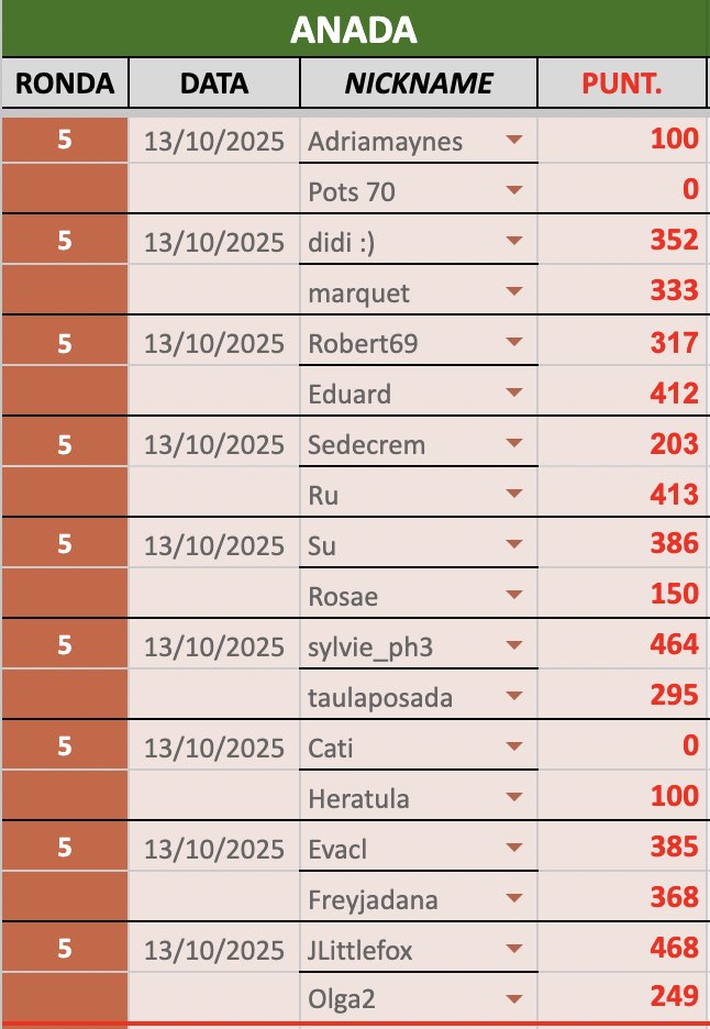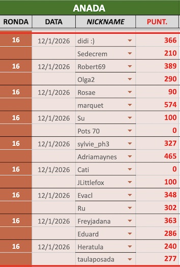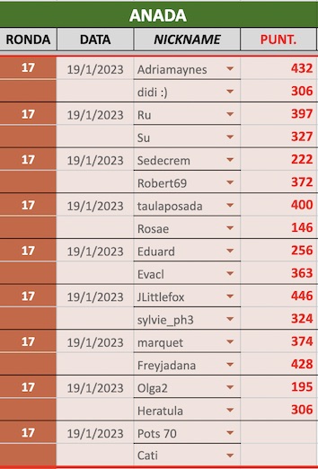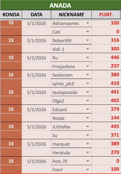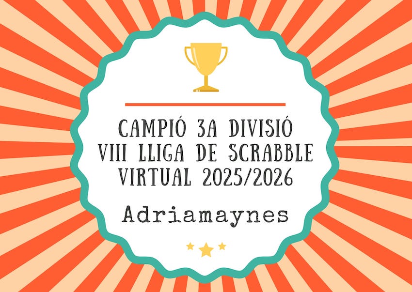 En aquesta secció us mantindrem al dia dels resultats i classificació de la 3a divisió de la 8a Lliga de Scrabble virtual amb Catamots.