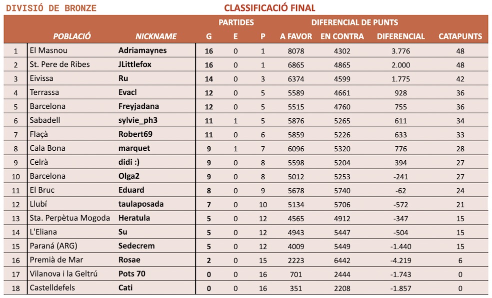 Per tant, Adriamaynes i JLittlefox pugen a 2a divisió i Ffont i Esgoav jugaran a 3a divisió la propera temporada.